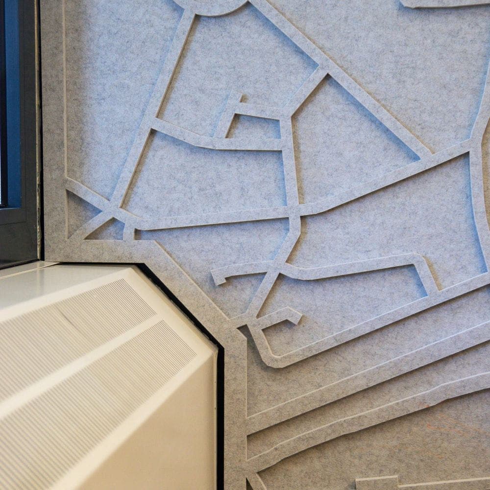 Filz hat eine einzigartige Textur: weich, schalldämpfend und fein. Die matte Oberfläche verleiht Wänden und Objekten ein natürliches Erscheinungsbild, ohne Glanz oder Härte. Zudem lässt sich PET-Filz ausgezeichnet mit anderen Materialien wie Holz, Stahl oder Glas kombinieren, wodurch Kontrast und Balance entstehen.